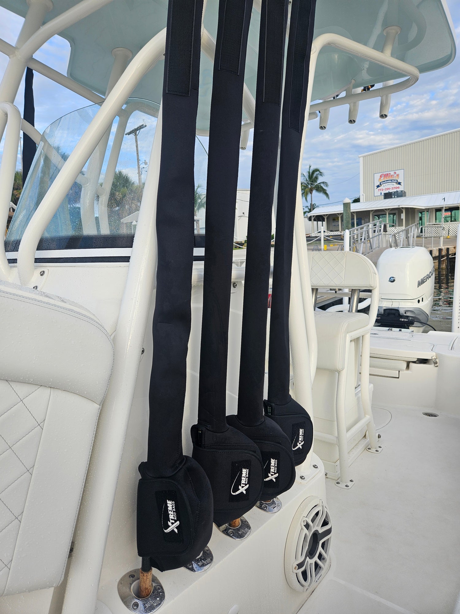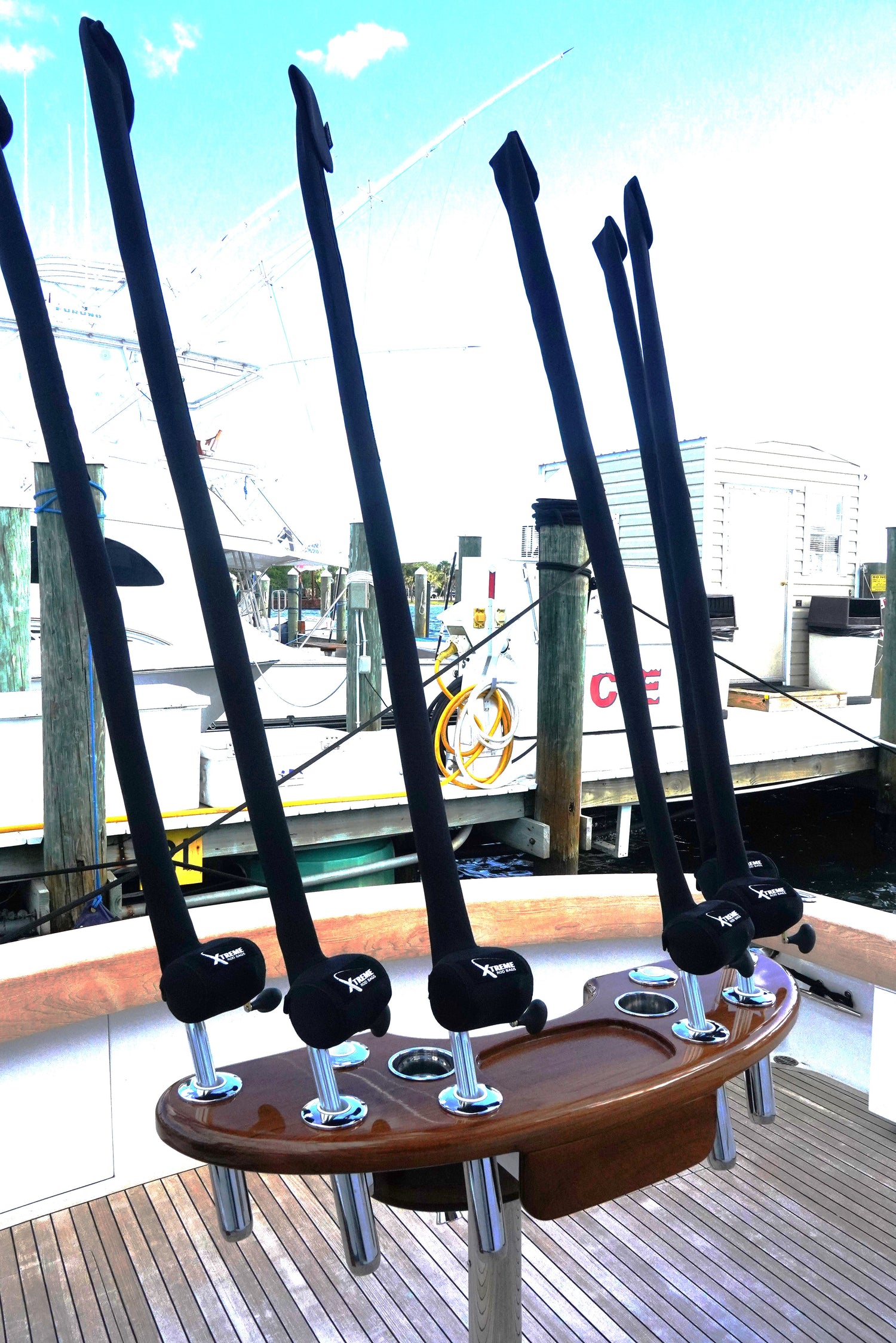 Made from high density neoprene, the same material that wetsuits are made from, these custom fit rod and reel bags protect your valuable gear against damage from impacts and water spray while traveling in the cockpit, stacked in a bunk or gear locker or during transport to and from your boat.