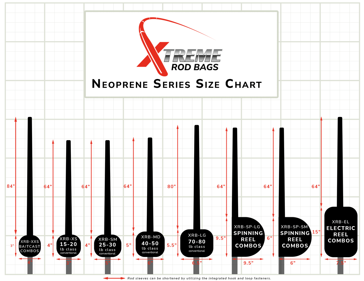 The rod sleeves feature integrated hook and loop fasteners that allow for adjustable sizing, shortening the length down from 60" to fit all rod sizes. In addition, the Large bag is adjustable in length, allowing it to fully cover extra-long 80 lb rods and reels designed for chair fighting, and can be adjusted down from 80" for a custom fit.